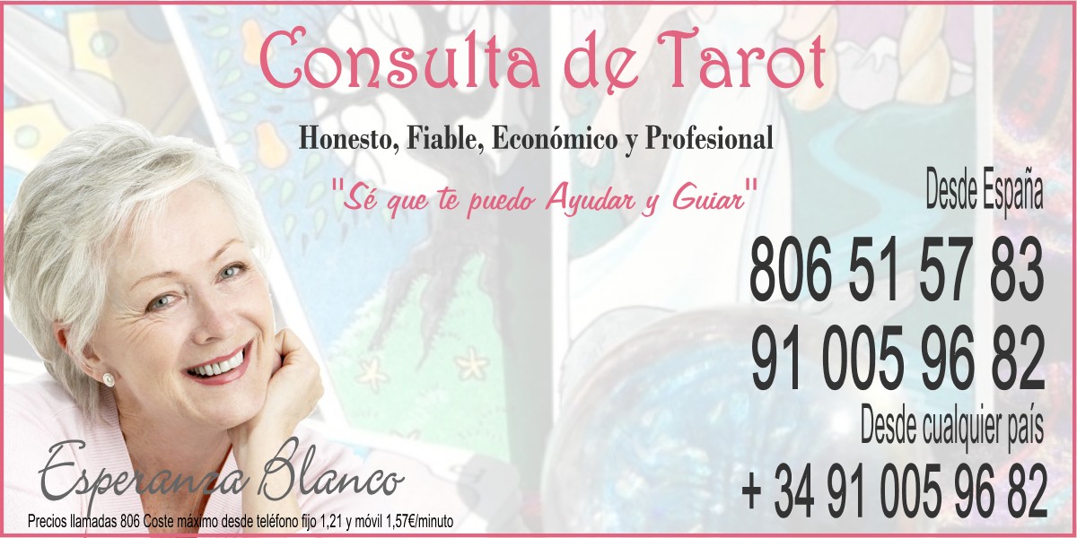 Soy Esperanza Blanco y soy Vidente Natural de nacimiento. Llevo más de 30 años experimentando mi don de tarotista y con el tiempo, he podido comprobar la calidad y la certeza de mis consultas de tarot del amor: SIN MENTIRAS, SIN ENGAÑOS, SIN FALSAS ESPERANZAS.